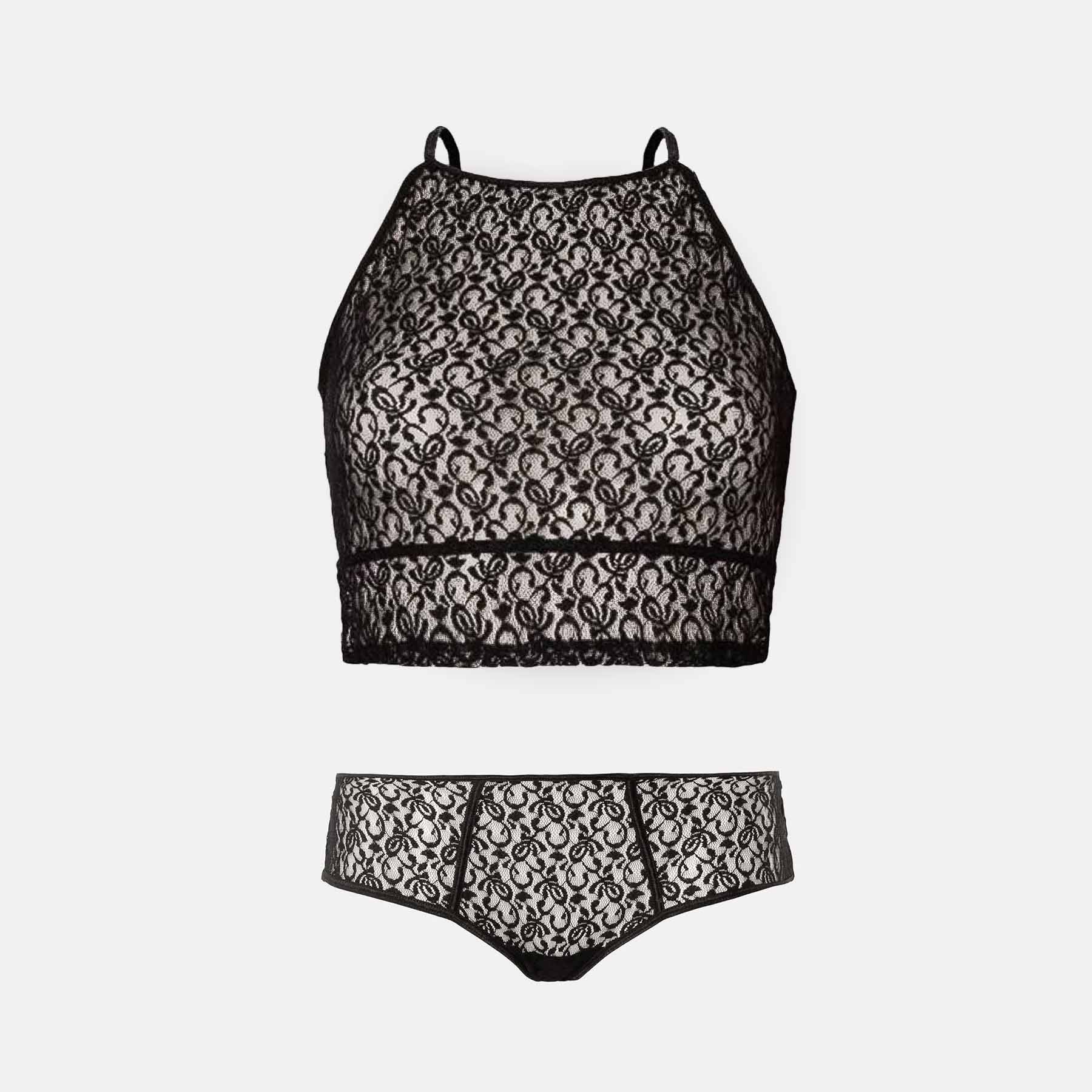 In dieser Couple Edition verschmelzen das feminine Ensemble Bella – bestehend aus Slip und Top – mit der maskulinen Interpretation Empire Floris zu einem stilistisch harmonischen Partnerlook. Beide Designs basieren auf der gleichen floralen Spitze und bringen sie in eigenständigen Silhouetten zum Ausdruck: weich fließend und zart bei Bella, strukturiert und sportlich bei Floris. So entsteht ein ausdrucksstarkes Zusammenspiel, das Individualität respektiert und dennoch Verbundenheit sichtbar macht – für Paare mit Haltung und Sinn für feine Details.